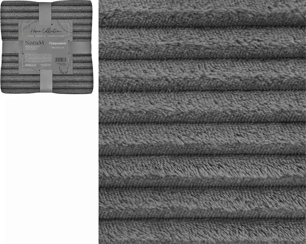 Покрывало 220*240 см хлопок серое ВН